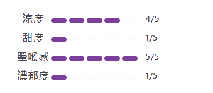 - 甜度 1 / 5 — 幾乎無甜度,純薄荷系必愛