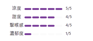 - 中段:冰感迅速釋放,喉感清爽順滑。